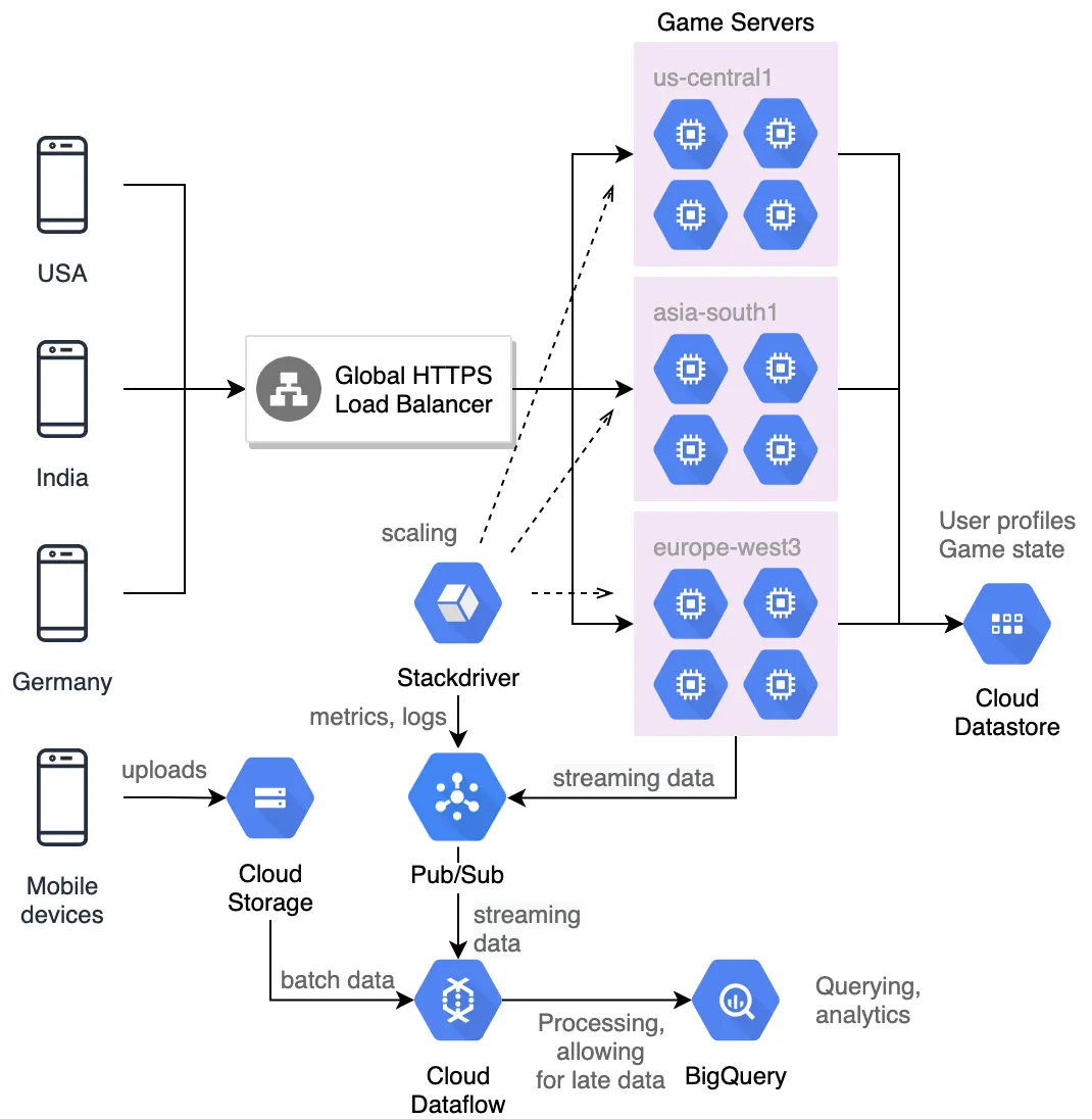 | User profiles and game state storage. | NoSQL transactional database (Datastore). |