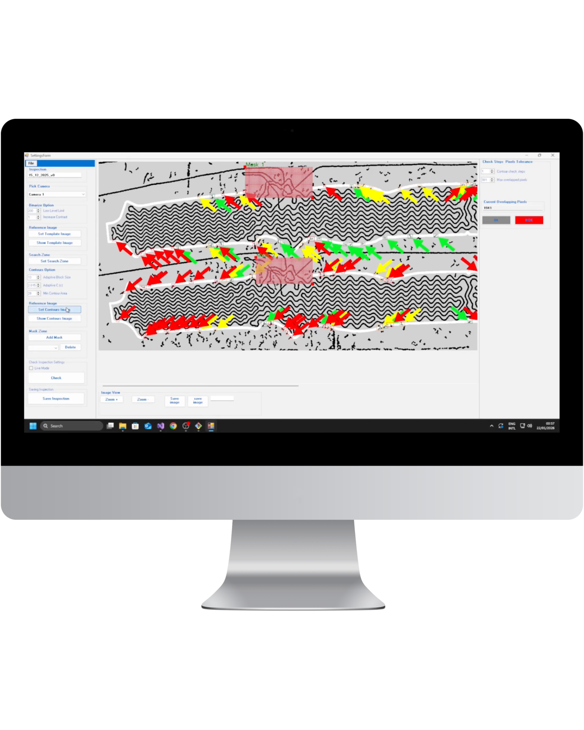 Reworked image preprocessing and contour detection logic to ensure stable heating wire recognition under new lighting and material conditions. Improved robustness without changing inspection tolerances or production cycle time.